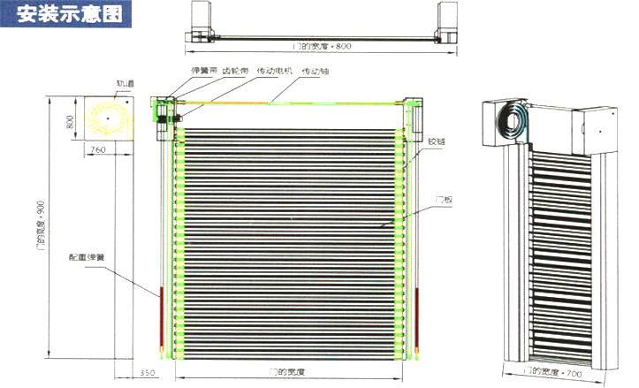 門體結構 門簾為分體裝配結構:斷橋隔熱的鋁合金門板、多層次密封膠條、消音承重鉸鏈、聚氨酯導向輪等幾個部分組成